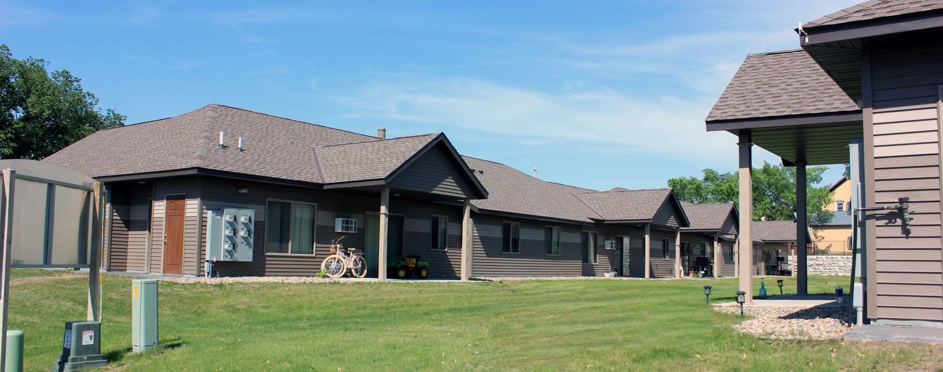 Long Prairie has two fourplex units. Each unit is 1,200 sq foot of one-level living includes full 2 stall attached garage, with a back covered patio. Each four plex has an option of a 2 bedroom one bathroom or 3 bedroom 2 bath unit with an open floor plan and access to back/front yard.